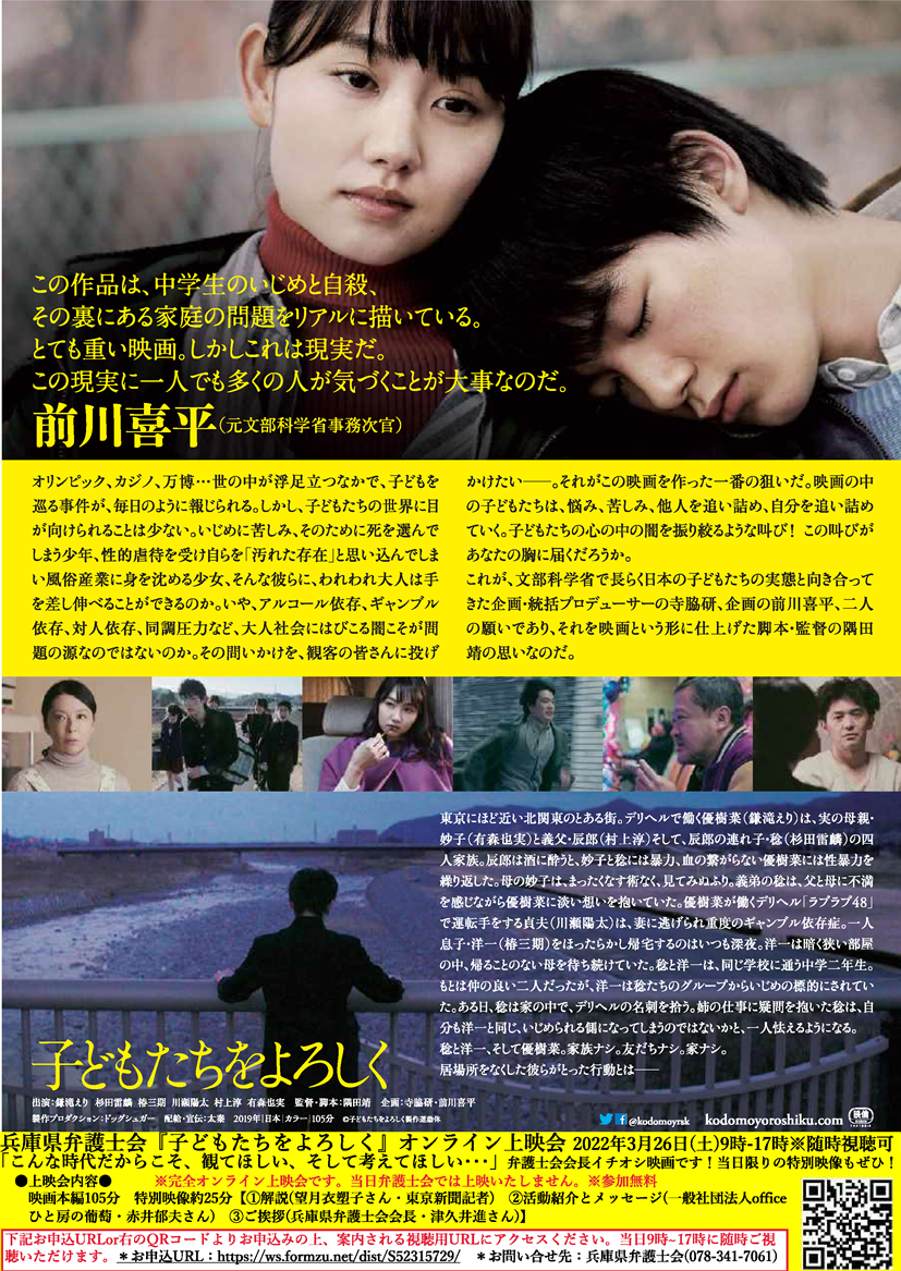 兵庫県弁護士会では、下記のとおり、映画「子どもたちをよろしく」の上映会を実施します。