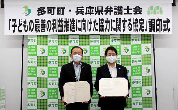 本日、当会は、多可町との間で、子どもの最善の利益推進に向けた連携協定を締結しました。この協定は、学校教育や児童福祉など、多可町が講じる子どもに関する施策全般にわたって、町からの求めに応じて弁護士を派遣することを目的とするものです。このような協定を自治体と締結するのは、当会でははじめてとなります。