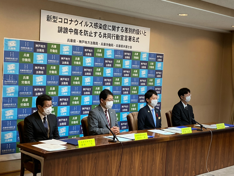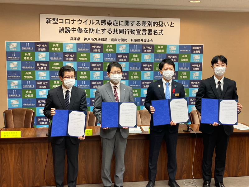 そして、私たちは、本日以降、兵庫県、神戸地方法務局、兵庫労働局等の協力・連携を得ながら、これまで以上に、基本的人権の擁護と社会正義の実現をその使命とする弁護士として、ありとあらゆる差別偏見が許されないことを発信し続け、これからも差別偏見を防止する活動を続けていく決意を改めて表明します。